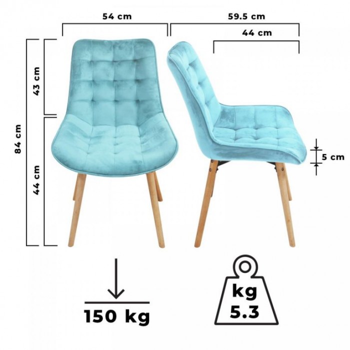 Nábytek ve skandinávském stylu je již delší dobu trendem v domácnostech i komerčních prostorách. Naše vintage jídelní židle upoutá pozornost a vnese do Vašeho domova jednoduchou eleganci. Stabilní opěradlo a tvarovaný sedák s čalouněním zajišťují pohodlí při sezení. Pevnost židle je zajištěna díky nohám z bukového dřeva. Židle se hodí do jídelny, kuchyně, obývacího pokoje nebo do haly, zkrátka kamkoliv, kde hledáte pohodlné a stylové posezení. Tyto moderní a zároveň vintage jídelní židle se sametovým sedákem a nohami z bukového dřeva jsou dokonalým doplňkem každého interiéru. Díky polstrování sedáku v tloušťce 5 cm jsou židle opravdu velice pohodlné.