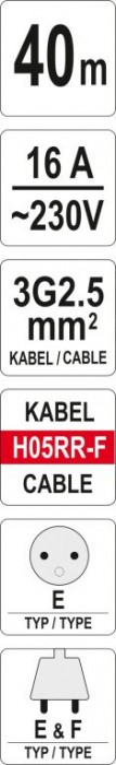 - kabel: H05RR-F (3 x 2,5 mm2)