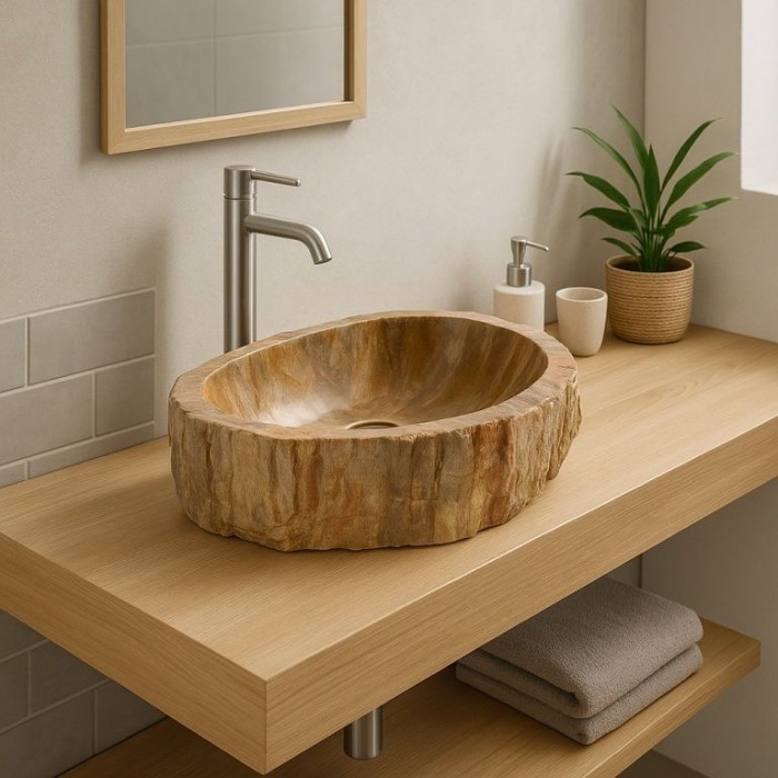 Kamenné umyvadlo Foresta, zkamenělé dřevo, ruční výroba