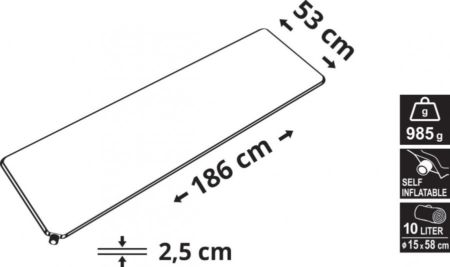 Samonafukovací karimatka má vysokoporézní pěnové jádro zalaminované do nepropustné tkaniny. Tento pěnový materiál do sebe po otevření ventilu nasává vzduch a rychle expanduje, čímž karimatka získává svůj typický tvar. Při skládání samonafukovací karimatky se nejdříve uvolní ventil a tlakem se vzduch vyhání ven. Díky tomu má mnohem menší rozměry v balení, oproti běžným pěnovým karimatkám. Balení má drobné rozměry 58 x 15 cm a váhu 985 g, takže není problém mít ho jako zavazadlo v přírodě vždy s sebou.