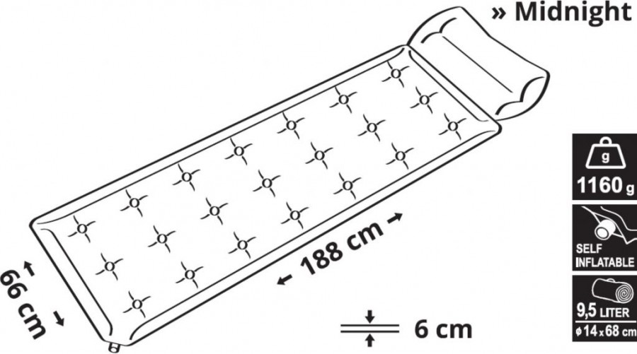 Popis: Samonafukovací karimatka MIDNIGHT s polštářem