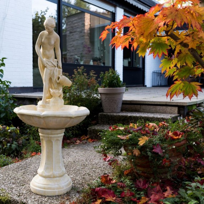 Nádherná fontána vnese romantiku do vašeho domova a zahrady. Je vybavena čerpadlem s plynulým chodem, u něhož lze navíc nastavit rychlost výdeje. Je vyroben z polyresinu, který je odolný a těžko rozeznatelný od pravého kamene. Voda vždy cirkuluje pomocí čerpadla.
