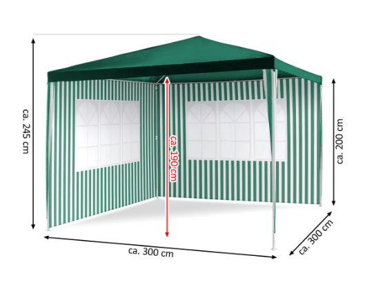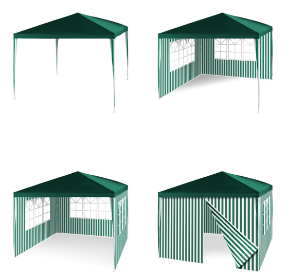 Popis: Zahradní párty stan - zelený 3 x 3 m + 2 boční stěny
