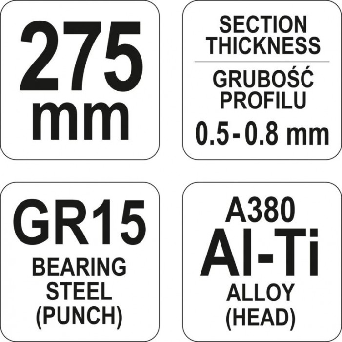 Popis: Kleště ke spojování profilů 275mm max 0,8mm
