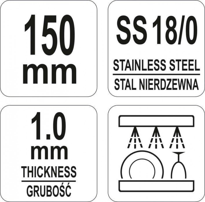Trvanlivý a odolný design zaručuje dlouhou životnost. Estetický chromový povrch jim dává elegantní vzhled. Možné mýt i v myčce nádobí.