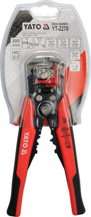 Multifunkční izolační kleště YT-2270 se zčernalým povrchem, který chrání před korozí. Rukojeti zajištěné dvousložkovými plastovými krytkami.