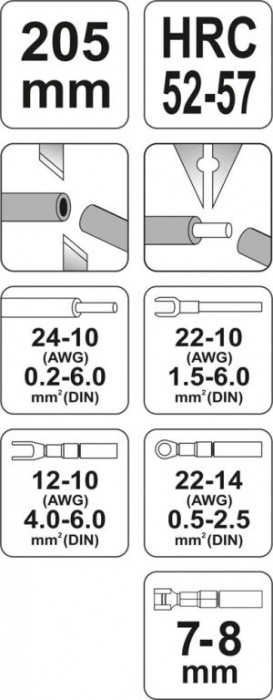 Popis: Kleště odizolovací a konektorové univerzální 205 mm