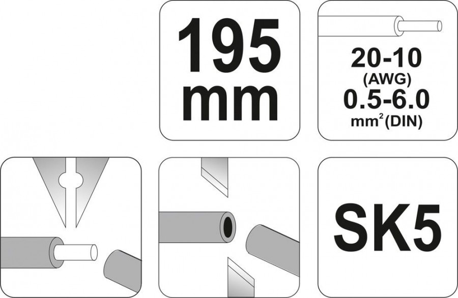- průměr: kabely 10-20 AWG (0,5 mm - 6 mm2)