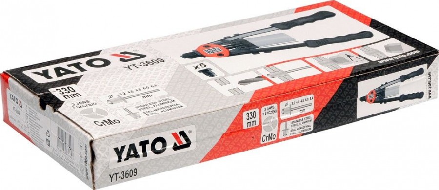 Vysoce kvalitní, nýtovací pákové kleště pro nerezové i hliníkové nýty. Klešte mají délku 330 mm, čelisti jsou precizně zpracovány z CrMo oceli a jsou určené pro nýty 3,2 - 6,4 mm. Utržené zbytky nýtů jsou sbírány do sběrné nádoby ve spodní části kleští, čímž významně urychlí a usnadní práci.