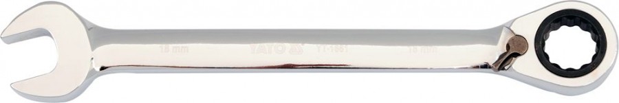 Očkoplochý klíč s dvanáctihranným profilem opatřeným ráčnou s jemným 72 zubým chodem a přepínačem levého/pravého chodu.
