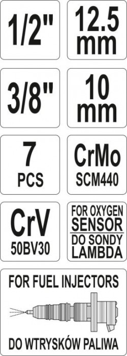 Popis: Sada klíčů nástrčných na lambda sondy a vstřiky 7 ks