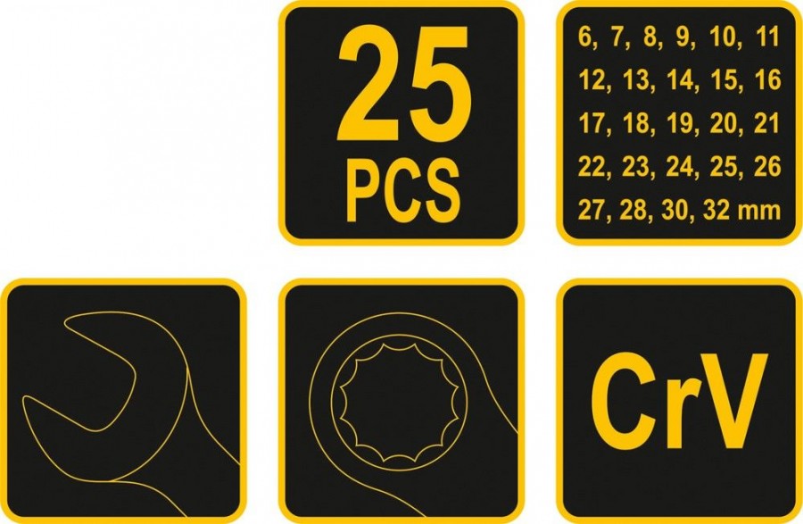 Popis: Sada klíčů očkoplochých 25 ks 6 - 32 mm CrV