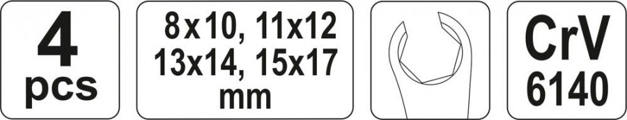 Balení obsahuje klíče 8x10, 11x12, 13x14, 15x17 mm.