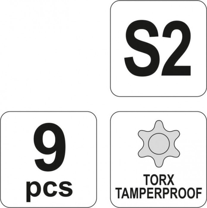 V balení jsou Torx klíče T10; T15; T20; T25; T27; T30; T40; T45; T50 délek 87 - 216 mm.