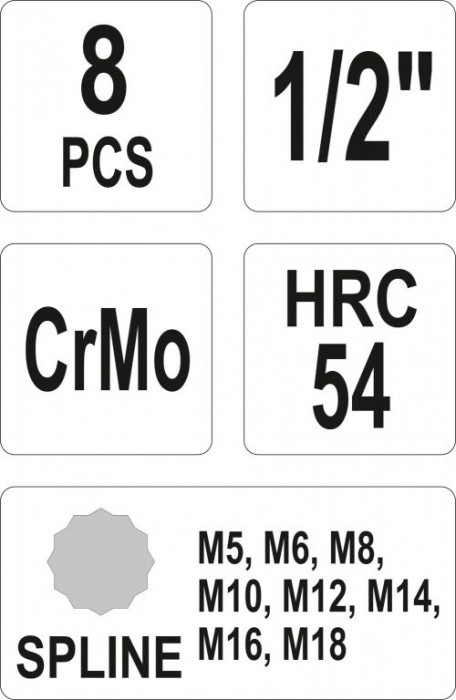 Popis: Sada nástrčných klíčů 1/2" Spline, 8 ks