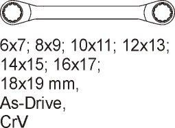 Popis: Vložka do zásuvky - očkové ohnuté klíče 6 - 19 mm, 7 ks