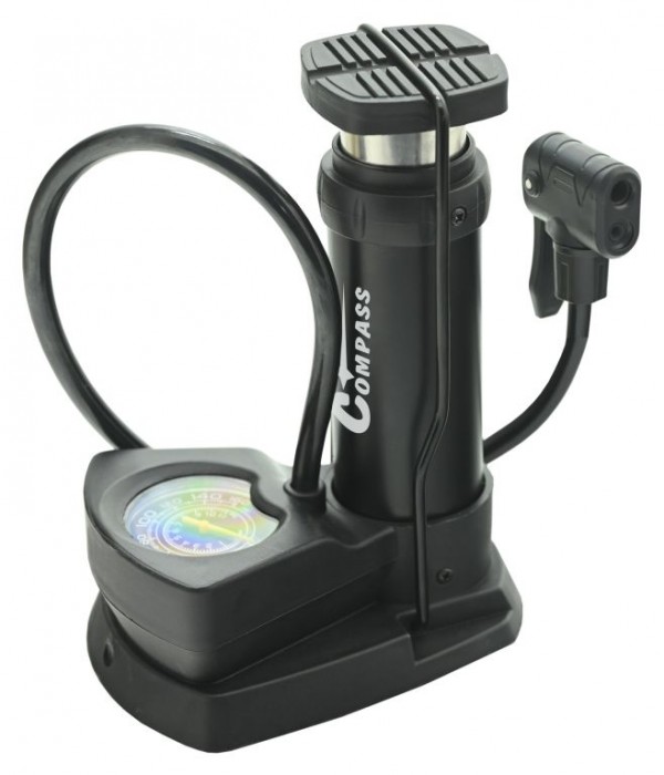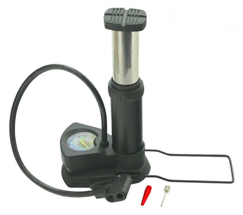 Nožní hustilka s ocelovým válcem a integrovaným tlakoměrem je praktickým pomocníkem pro snadné huštění.