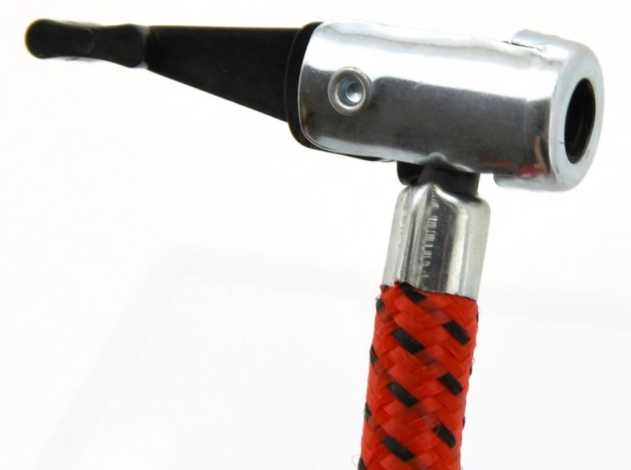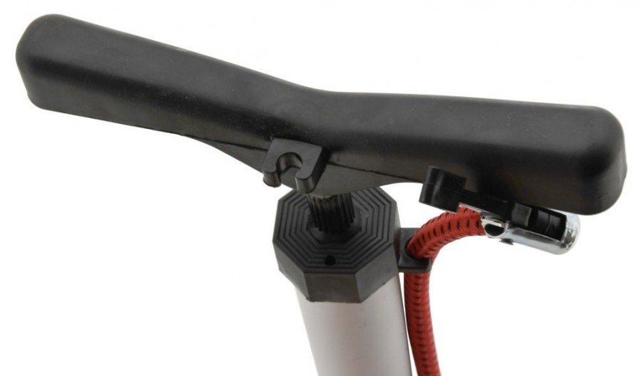 Madlo hustilky je opatřeno držákem pro uchycení adaptérů, které tak budete mít vždy při ruce. Hustilka je vybavena opěrou na nohu a zároveň ergonomicky tvarovanou rukojetí pro snadné použití.