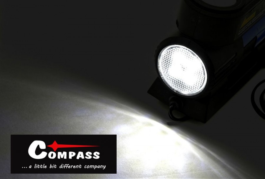Kompresor je vybavený vestavěným pneuměřičem, který zobrazuje naměřený tlak. Kompresor je navíc v přední části opatřen LED osvětlením.