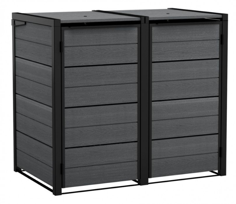 Skříň na popelnice HIDE AWAY kombinuje pohodlí, funkčnost a moderní vzhled, který dokonale zapadne do každého venkovního prostoru. Pořiďte si praktického pomocníka, který Vám usnadní třídění odpadu a zlepší vzhled okolí Vašeho domu.