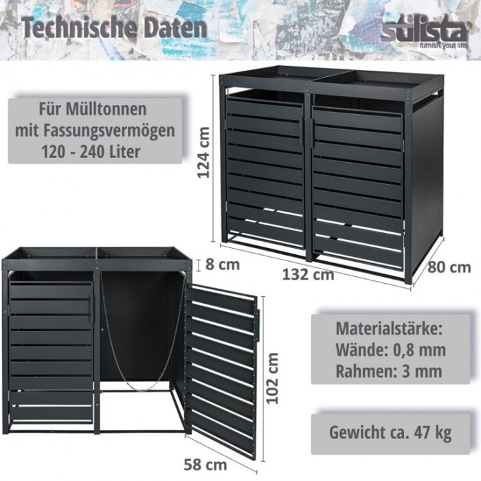 Popis: STILISTA Přístřešek na 2 popelnice, 132x124x80cm, antracit