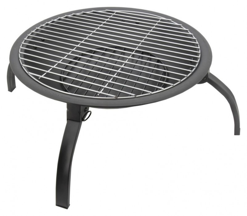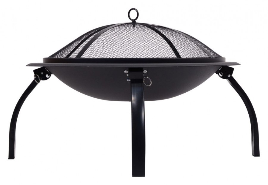 Konstrukce ohniště je vyrobena z kvalitní oceli s vysokoteplotním černým nátěrem. Na popel je ohniště opatřeno ocelovou mřížkou se smaltovanou povrchovou úpravou. Speciálně tvarovaný poklop s pletivem poslouží jako ochrana před jiskrami, což výrazně zvyšuje bezpečnost a pohodlí. Přiložen je i kovový pohrabáč s dřevěnou rukojetí, který lze použít jak k urovnání ohně, tak i k snadnému sundání poklopu. Ohniště je navíc vybaveno roštem a čtyřmi skládacími nohami pro lepší skladnost.