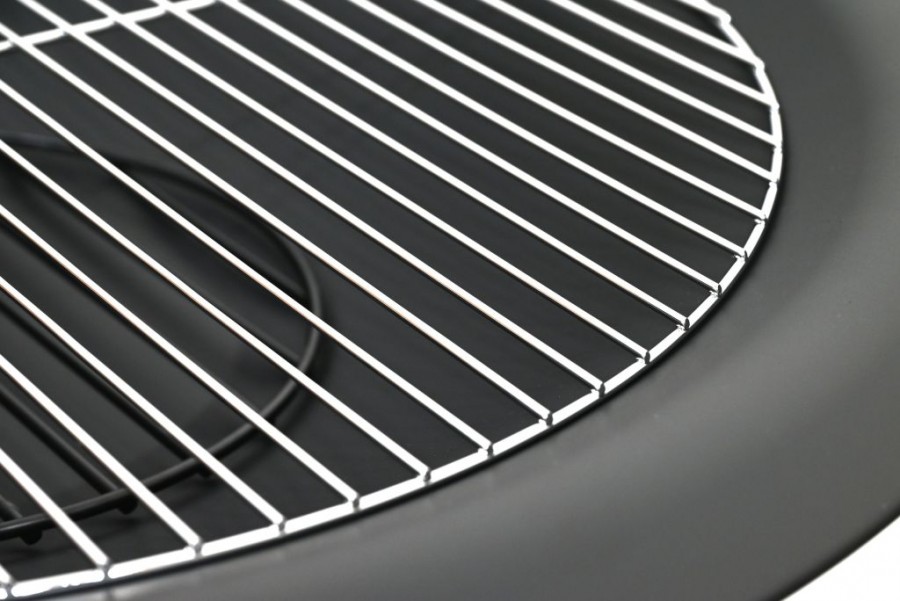 Stabilitu zajišťuje dvou prstencová konstrukce se 4x nohami z kvalitní oceli s vysokoteplotním černým nátěrem. Pro grilování je ohniště opatřeno roštem průměru 60 cm z nerezové oceli.