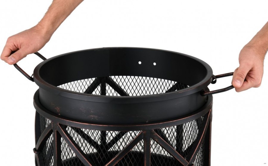 Ideální pro bezpečnou přípravu táborového ohně jako zdroje tepla a světla a také jako dekorativní prvek. Tělo z oceli se smaltovaným povrchem zajistí vysokou odolnost ohniště. Vysoké síťované stěny zajišťují, že dřevo ani popel nepadá okolo ohniště. Ocelové nohy pak zajistí stabilitu a tepelnou ochrano podkladu. Tělo s moderním designem je navíc doplněno o dvě rukojeti pro možnost přenášení.
