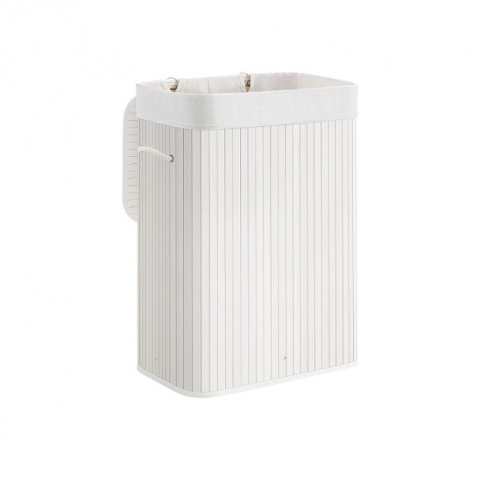 Bambusový koš na prádlo s víkem 72 l, bílý, 40×30×60 cm