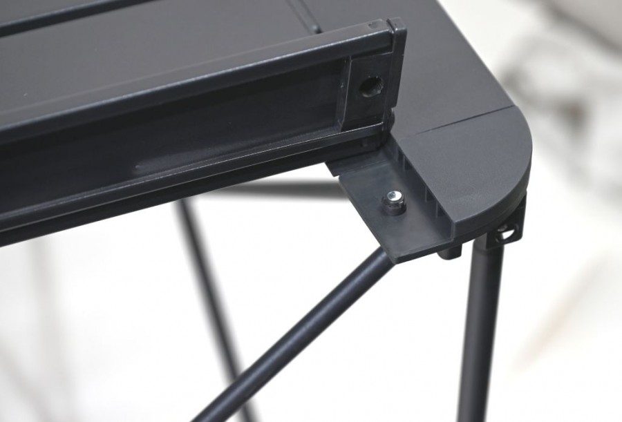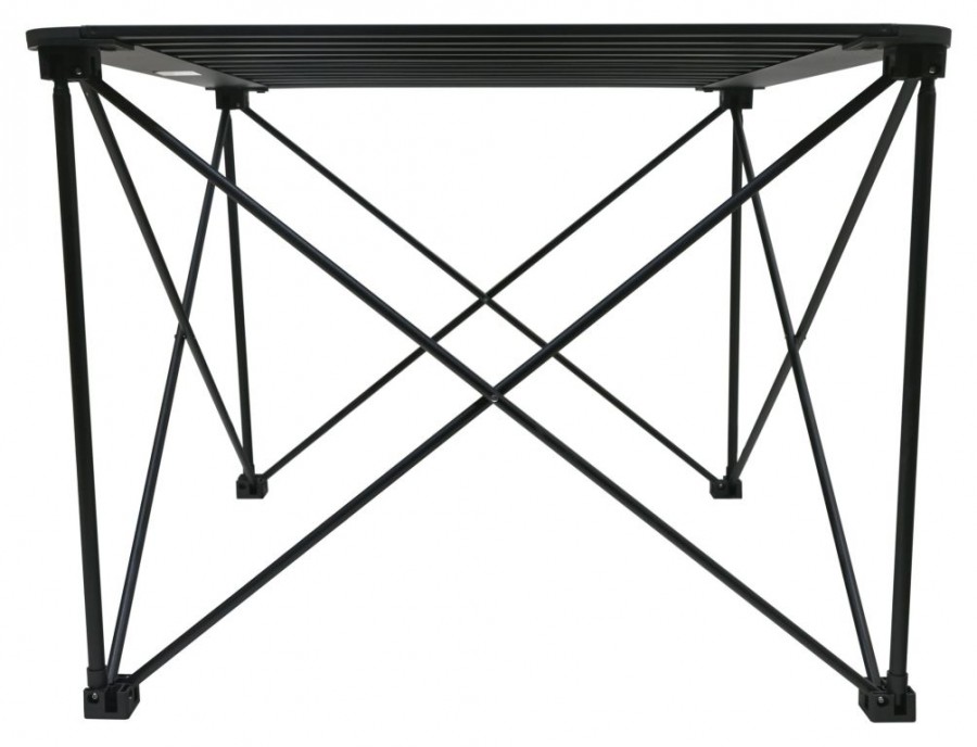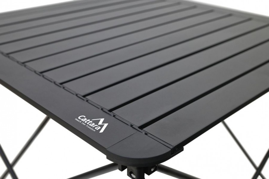 Stůl je opatřen lamelovou plochou s rozměry 70 x 70 cm ve výšce 56,5 cm a nabízí maximální nosnost až pro 50 kg vybavení, potravin apod.
