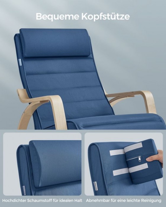 Houpací křeslo s opěrkou nohou a polštářem, tmavě modré
