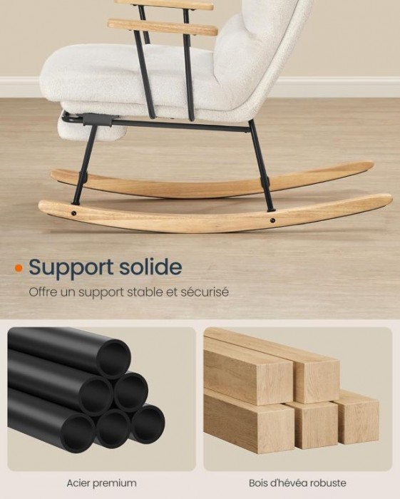 Dopřejte si dokonalý relax po náročném dni. Toto houpací křeslo s jemným krémovým potahem a nastavitelným opěradlem vás příjemně obejme a nabídne ideální místo pro čtení, sledování oblíbeného filmu nebo odpolední šlofík. Stylový vzhled a přírodní dřevěné nohy dodají vašemu domovu nádech elegance i klidu.