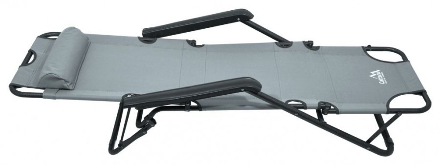 Lehátko lze používat konvenčním způsobem, nebo lze složit do podoby rybářského křesla, jež ocení kdejaký outdoor nadšenec. Lehátko je opatřené výškově nastavitelným polštářem a opěrkami rukou pro maximální pohodlí.