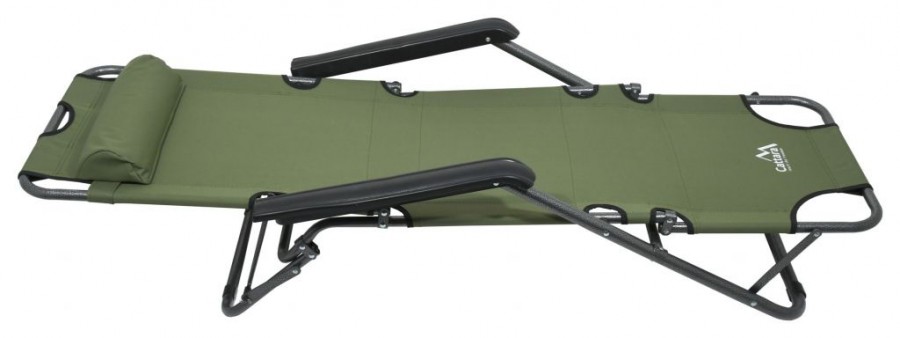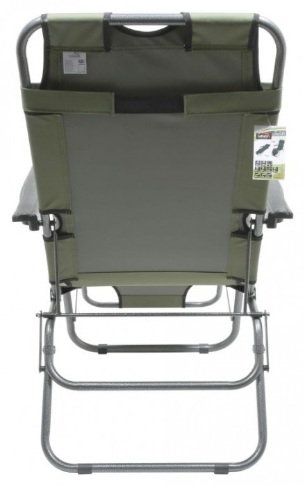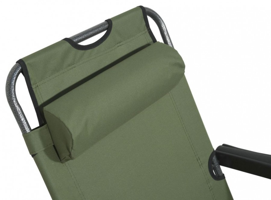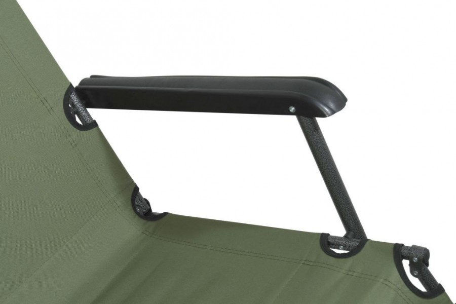 Lehátko lze používat konvenčním způsobem, nebo lze složit do podoby rybářského křesla, jež ocení kdejaký outdoor nadšenec. Lehátko je opatřené výškově nastavitelným polštářem a opěrkami rukou pro maximální pohodlí.