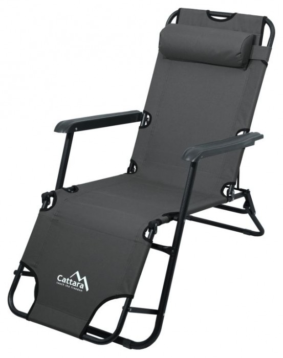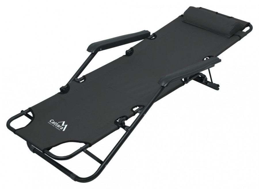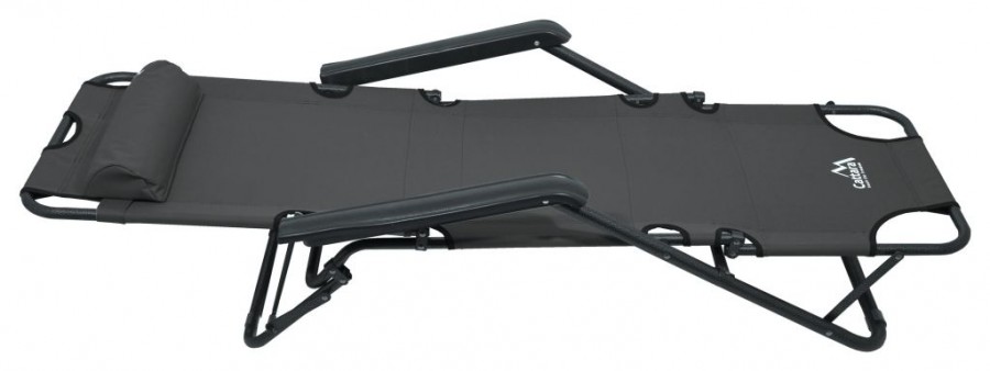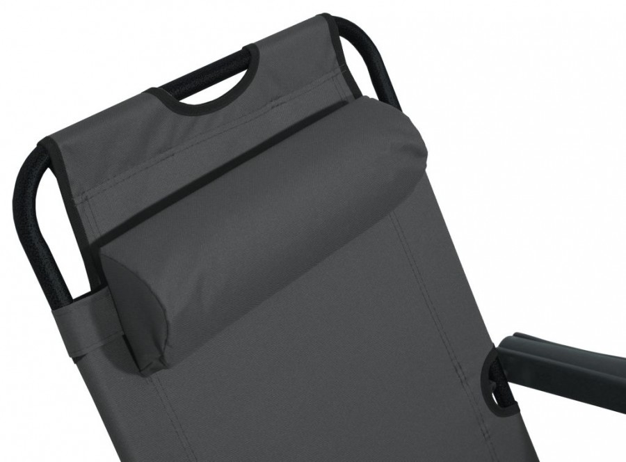 Lehátko lze používat konvenčním způsobem, nebo lze složit do podoby rybářského křesla, jež ocení kdejaký outdoor nadšenec. Lehátko je opatřené výškově nastavitelným polštářem a opěrkami rukou pro maximální pohodlí.