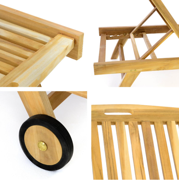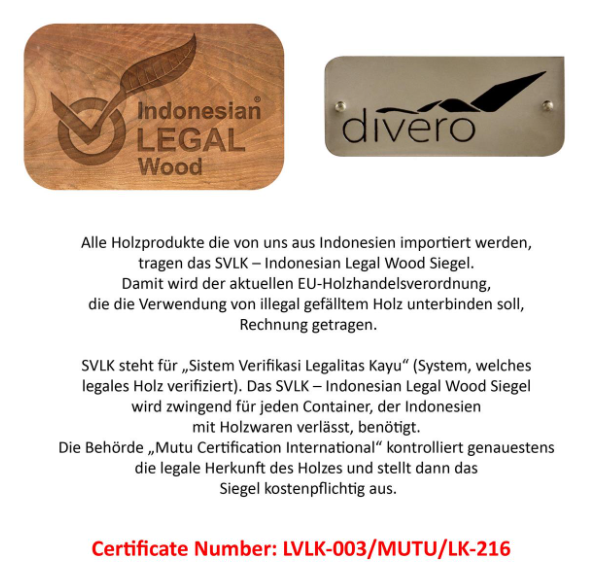 Při zazimování teakového nábytku se ujistěte, že není skladován na příliš teplém nebo příliš suchém místě. Dřevo by mohlo v důsledku změny klimatu zvenčí dovnitř příliš vyschnout a praskat. Použitý teak pochází z udržitelného a odpovědného lesnictví a má certifikaci SVLK. Náš dřevěný nábytek je ručně vyráběn v malých továrnách. Každý kus je jedinečný. Z tohoto důvodu jsou občas možné drobné odchylky v produktu. Odpovídající polštář zahradního nábytku z pevného pěnového jádra zajišťuje pohodlné ležení. Potah je vyroben ze strukturovaného polyesteru. Je vodoodpudivý a omyvatelný. Potah lze také sejmout pro šetrné čištění.