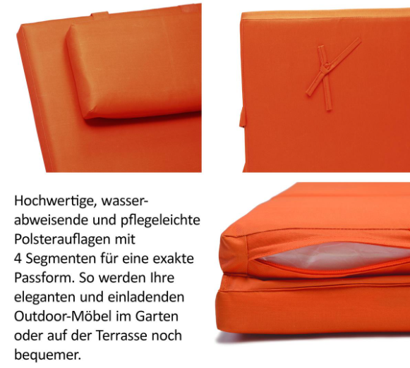 Popis: Zahradní lehátko DIVERO s polstrováním, oranžové
