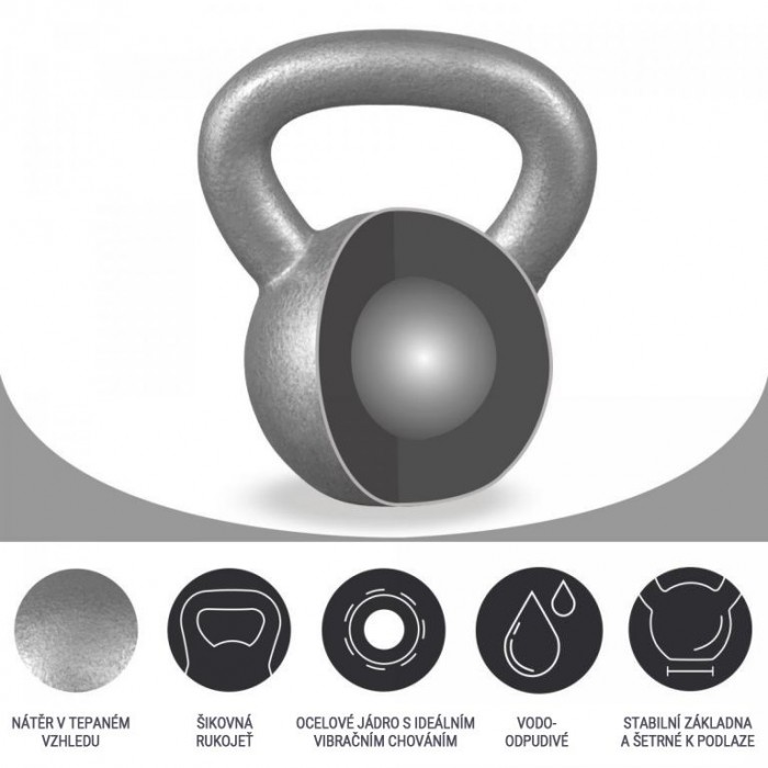 Tyto činky z litiny jsou ideální pro začátek silového tréninku. Můžete s nimi provádět švihy a základní cviky, jako jsou shyby, přítahy a přemístění. Pro optimální trénink je dobré naučit se tyto cviky zpočátku s lehčími váhami. Dbejte na čisté provedení pohybů. To ochrání vaše klouby a přináší nejsilnější účinky. Při houpání můžete nechat kettlebell kývat mezi nohama a pohybovat s ním s jednou nebo oběma rukama po stranách. Díky pevné konstrukci je tento litinový kettlebell praktickým tréninkovým nástrojem.
