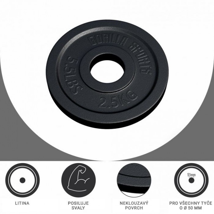 Popis: Gorilla Sports Zátěžový kotouč 50/51 mm, 2,5 kg