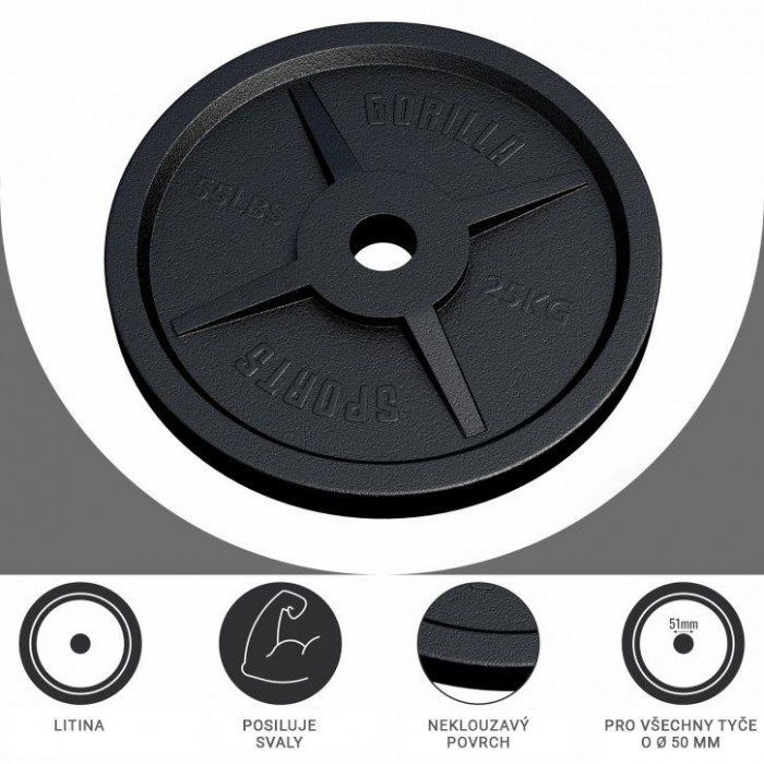 Popis: Gorilla Sports Zátěžový kotouč 50/51 mm, litina, 25 kg