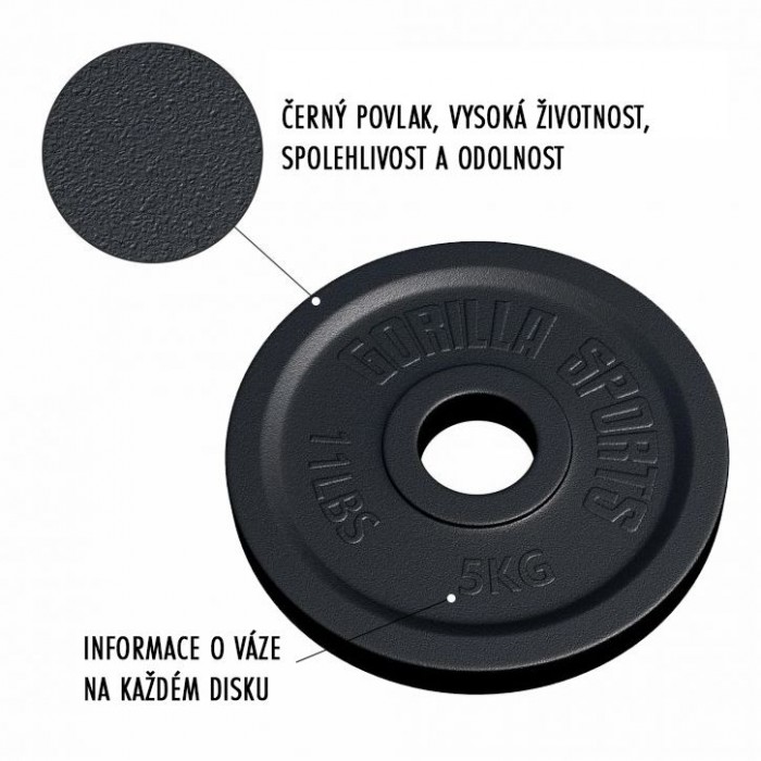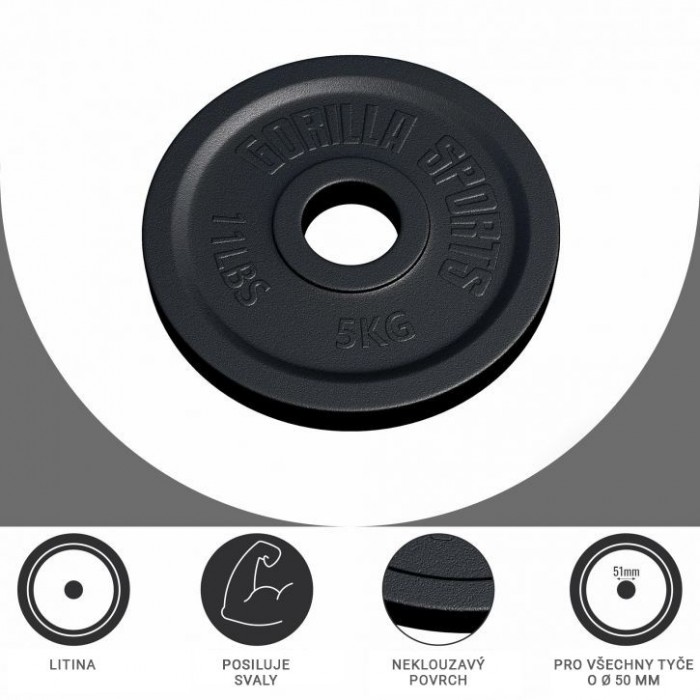 Popis: Gorilla Sports Zátěžový kotouč 50/51 mm, litina, 5 kg