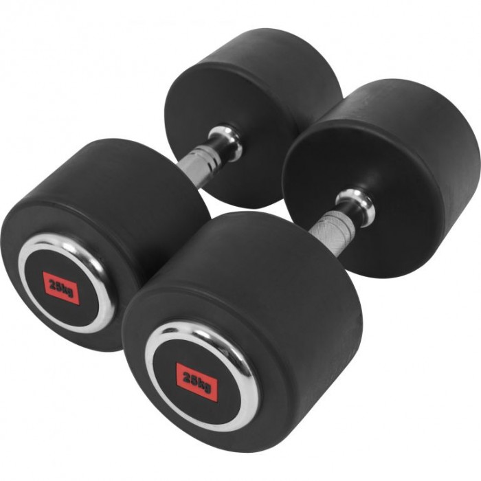 Tato činka je vhodná pro profesionální sporty. Má silnou pryžovou vrstvu, díky které je tichá a šetrná k zemi. Tyč této činky má protiskluzový profil. Perfektně padne do ruky a neklouže. Údaj o kilogramu je na boku podložen červenou barvou, takže je lépe viditelný a okamžitě upoutá pozornost.