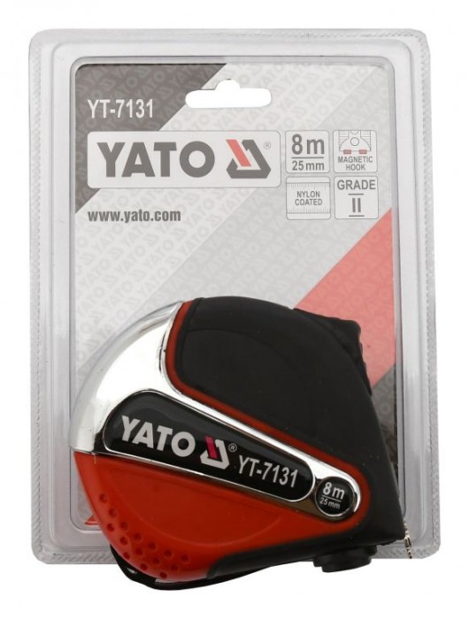 Zhotovení z elastického plechu šířky 25 mm, s nylonovým povlakem, který chrání pásku proti oděru a zbarvení pod vlivem slunečního záření. Kazeta je zhotovena z odolného ABS plastu s protiskluzovým gumovým povrchem.