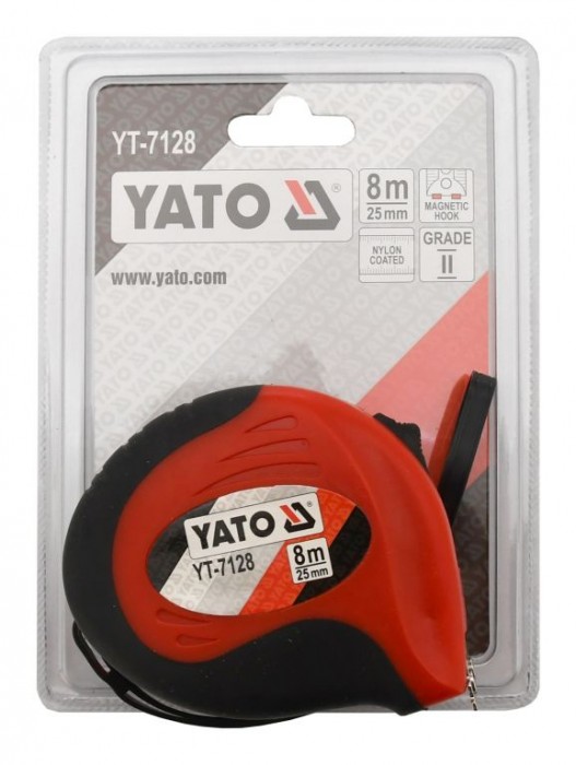 Zhotovení z elastického plechu šířky 25 mm, s nylonovým povlakem, který chrání pásku proti oděru a zbarvení pod vlivem slunečního záření. Kazeta je zhotovena z odolného ABS plastu s protiskluzovým gumovým povrchem.