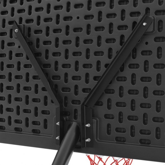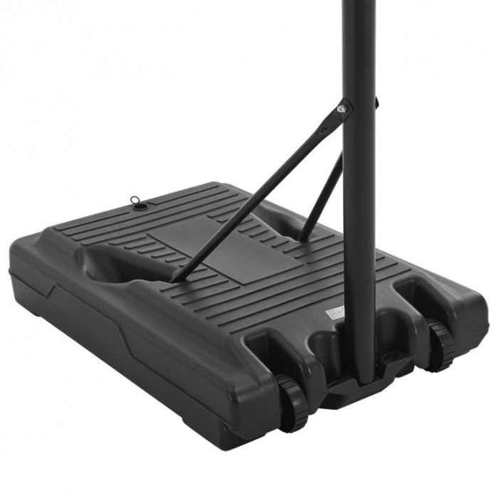 Robustní konstrukce zajišťuje dlouhou životnost a stabilitu i při intenzivním používání. Snadná montáž a možnost naplnění podstavce vodou nebo pískem poskytují bezpečné a pevné ukotvení. Díky velkým kolečkům lze koš snadno přesouvat, což oceníte při změně místa hry nebo při úklidu.