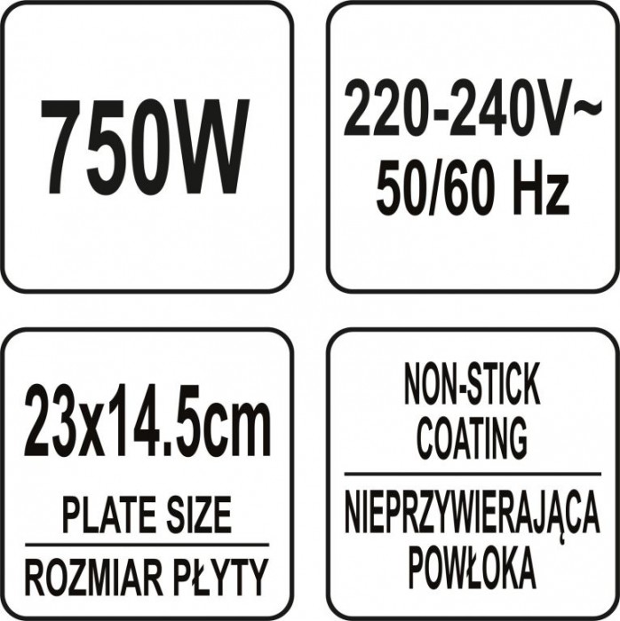 Popis: Gril na panini 275 x 220 x 90 mm, 750 W, černý