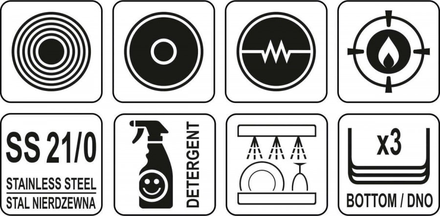 Největší výhodou pánví z tohoto typu oceli je tepelná vodivost až o 30% vyšší ve srovnání se standardními pánvemi z oceli 304. Vyznačují se také zvýšenou odolností vůči mechanickému poškození a působení organických kyselin a detergentů. Proto jsou vhodné do myčky nádobí a odolné vůči intenzivnímu mytí. Speciální konstrukce dna pánve rozděluje teplo rovnoměrně po celém spodním povrchu, což zvyšuje stupeň využití tepla a účinnost vaření. To se přímo promítá do jejich kvality a pohodlí práce šéfkuchaře. Toto řešení také snižuje riziko připálení jídla. Důležité je, že pánve vyrobené z oceli typu 21/0 neobsahují mangan a nikl, škodlivé pro lidské zdraví. Speciální vložka feromagnetická ve spodní části umožňuje použít YATO pánve na jakýkoliv typ sporáku (elektrický, indukční, plynový, sklokeramický).