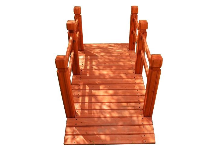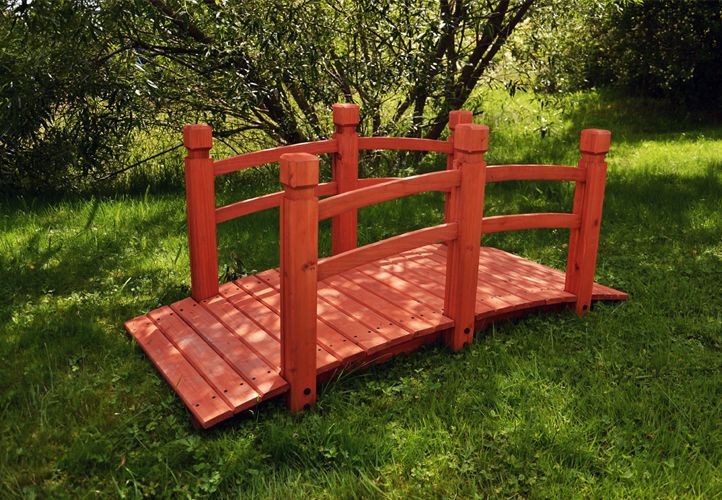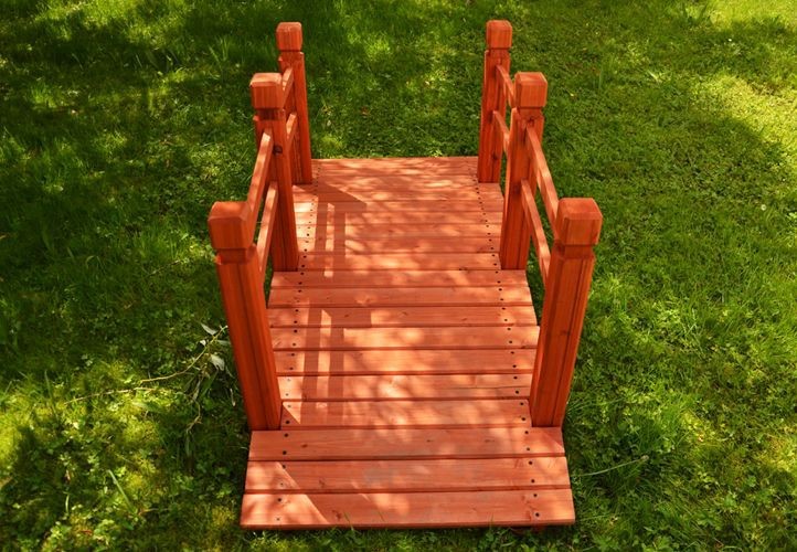 Okrasný zahradní můstek z masivní borovice v červenohnědé barvě. Můstek je ideální pro přemostění potoka, jezírka nebo malého rybníčku, skvěle ale poslouží i jako originální dekorace.