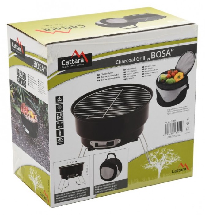 Popis: Cattara Gril na dřevěné uhlí BOSA přenosný, 26 x 22 x 26 cm