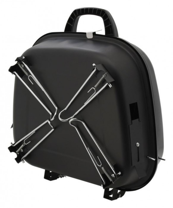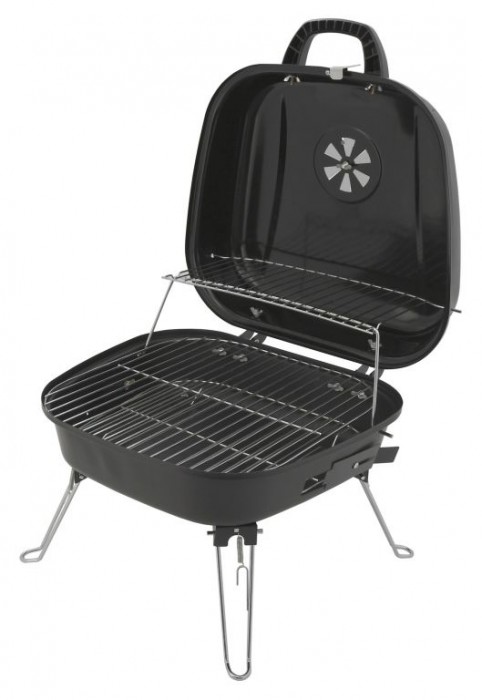 Konstrukce je vyrobena z kvalitního smaltovaného ocelového plechu černé barvy. Stabilitu zajištují čtyři kovové rozkládací nohy. Pro tepelnou přípravu pochutin je gril opatřen ocelovým roštem 35 x 33 cm. Gril je vybaven regulovatelnou ventilací na víku. Grilovací prostor je navíc opatřen odkládacím roštem. Pro snadné přenášení je složený gril zajištěn páčkou a pomocí rukojeti lze snadno přenášet.